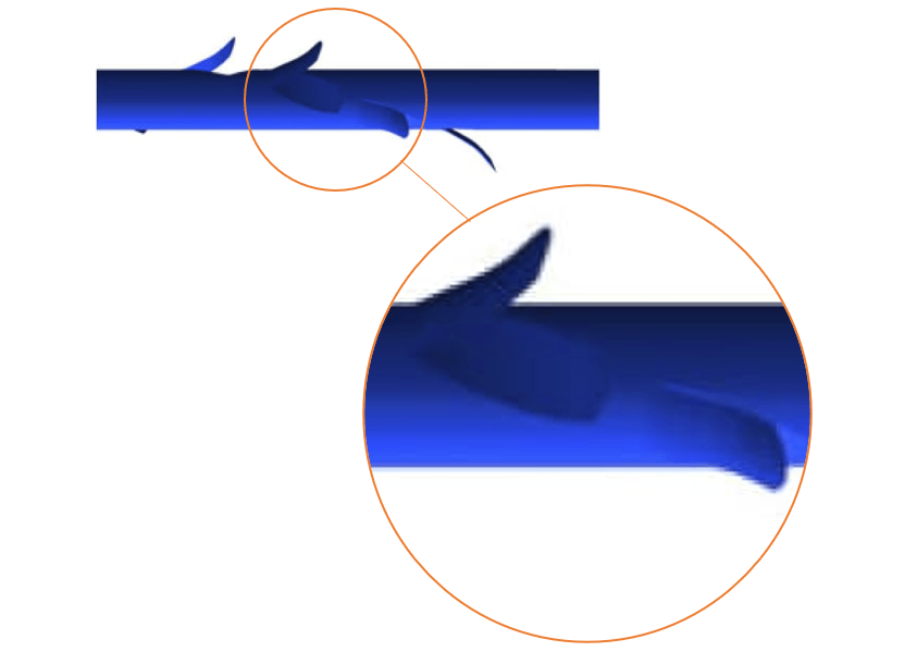 両サイドに強度のある糸にコグが付いており、スレッド全体で強固に固定してたるんだ皮膚をしっかりと持ち上げタルミを引き上げます。 ブリッジリフトの素材PCL(ポリカプロラクトン)はコラーゲン生成により、皮膚のハリ・弾性を取り戻します。 FDA(アメリカ食品医薬品局)から安全性を認められた材質で、従来の素材PDO(ポリディオキサノン)より長く皮膚に留まるため、効果の持続性が期待できます。アゴのタルミの場合は中央部分から糸を挿入してエラの下で止めて引き上げます。 そのためしっかりとアゴのたるんだ部分を持ち上げて改善させることができますので、タルミが原因による二重アゴでお悩みの方には最適な施術方法です。